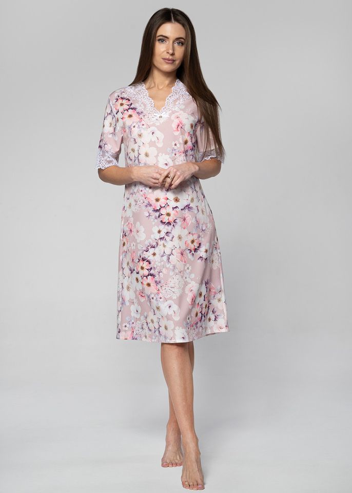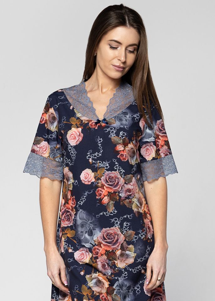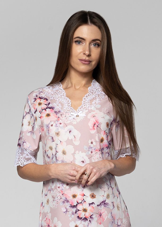 Жіноча нічна сорочка з шовку з квітковим принтом