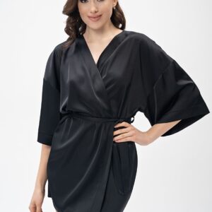 Короткий теплий жіночий халат з м’якого та якісного флісу кремового кольору в рожевий горошок. Модель класичного крою з довгим рукавом та капюшоном.